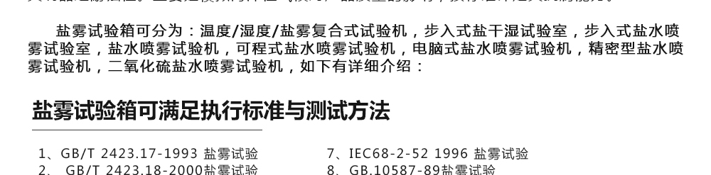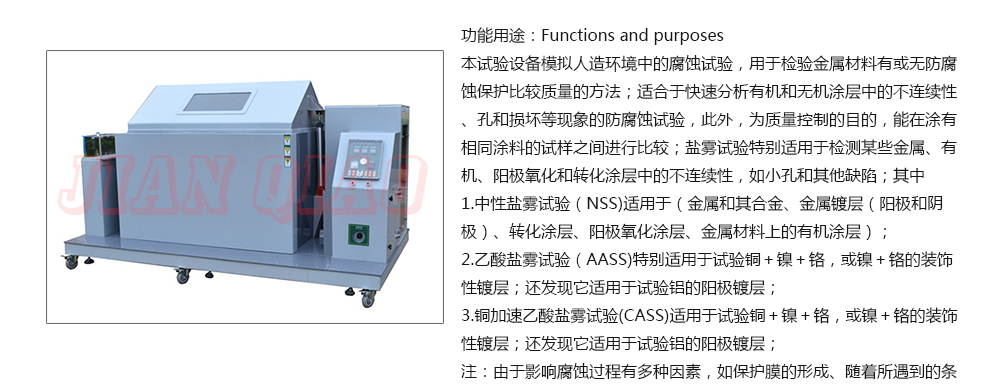 用途:鹽霧試驗箱可分為:溫度/濕度/鹽霧復(fù)合式試驗機(jī),步入式鹽干濕試驗室,步入式鹽水噴霧試驗室,鹽水噴霧試驗機(jī),可程式鹽水噴霧試驗機(jī),電腦式鹽水噴霧試驗機(jī),精密型鹽水噴霧試