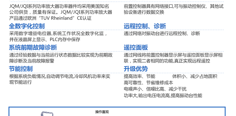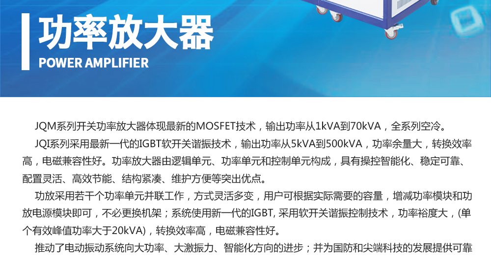 用途:功率放大器由邏輯單元、功率單元和控制單元構(gòu)成,具有操控智能化、穩(wěn)定可靠、配置靈活、高效節(jié)能、結(jié)構(gòu)緊湊、維護方便等突出優(yōu)點。